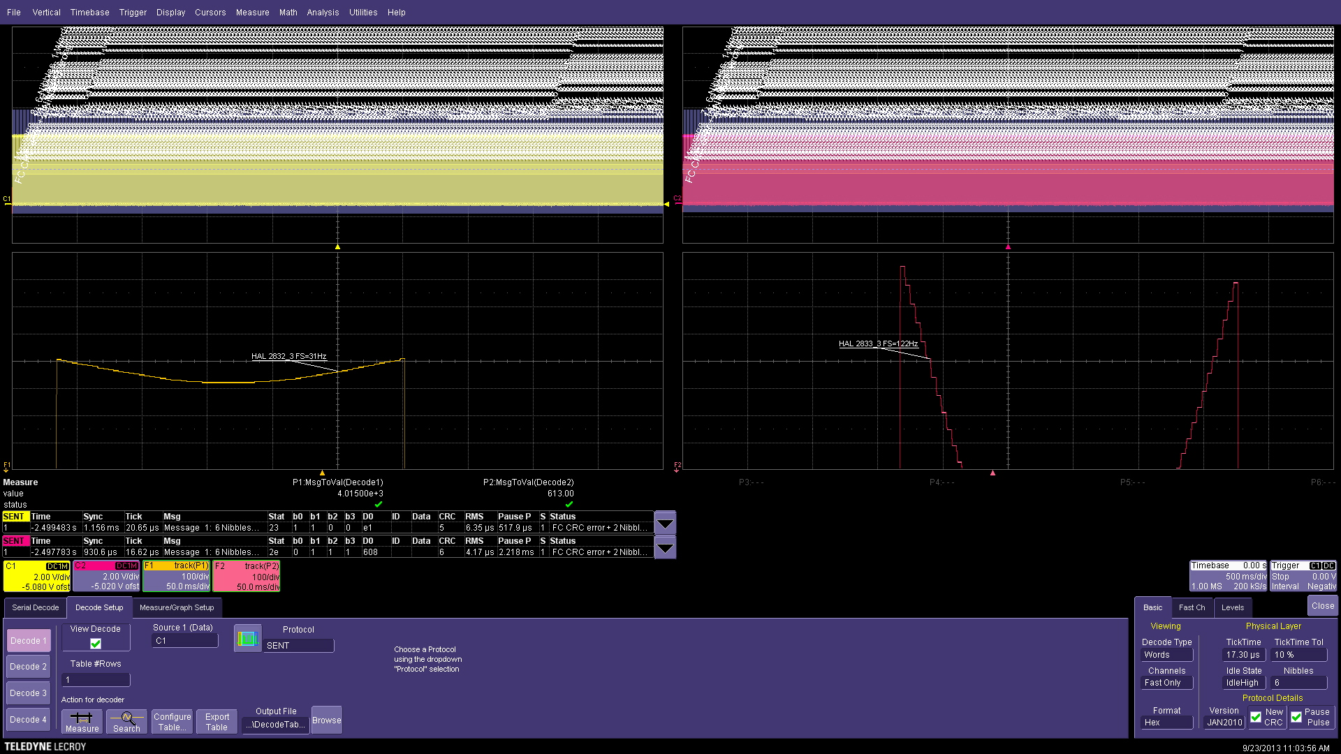 HAL 2833 Case 2 TT 2.75us 16 bit resolution Pause Pulse FS = 1KHz. |